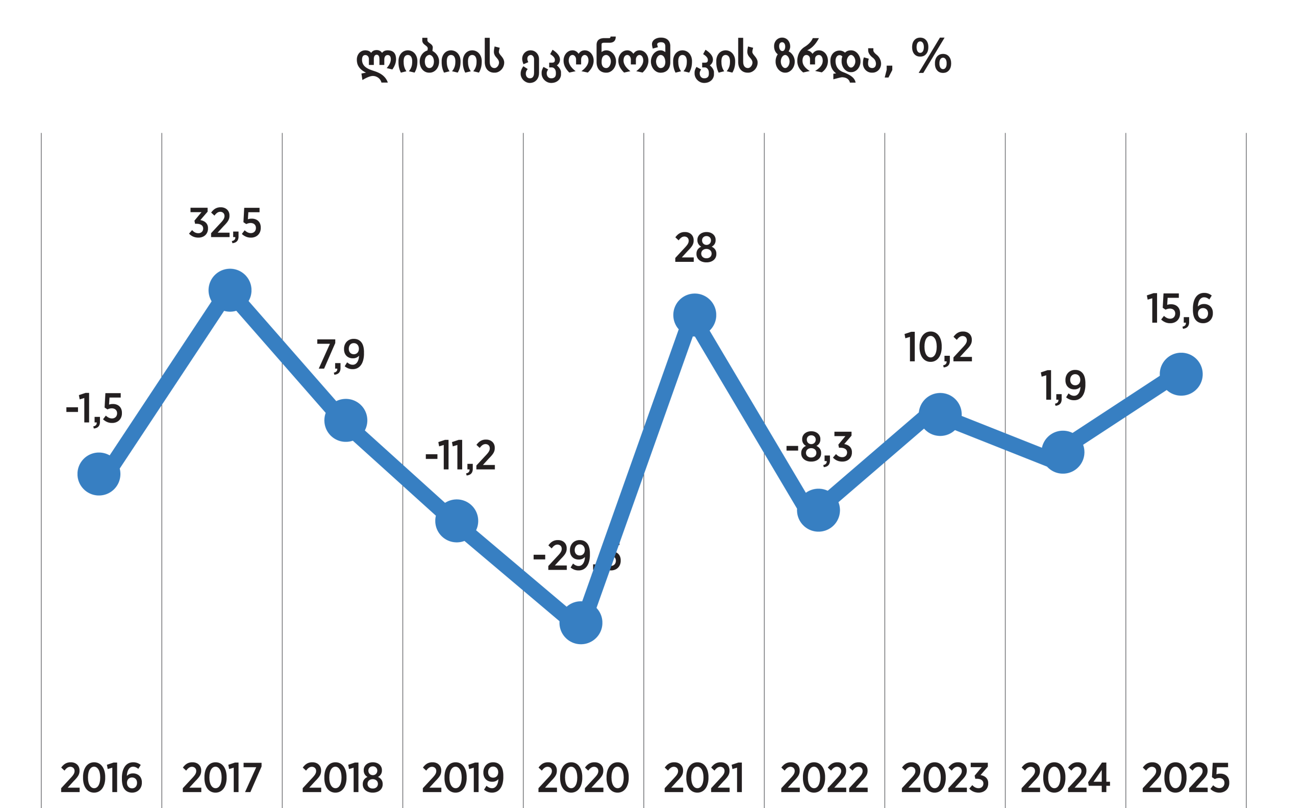 2025 წელს ლიბიის ეკონომიკის 15.6%-ის ზრდის მთავარი ფაქტორი შიდა პოლიტიკური სტაბილურობა და რუსულ ნავთობზე დაწესებული სანქციების გამო ლიბიის ნავთობზე გაზრდილი მოთხოვნაა. ლიბიამ ნავთობის მოპოვება 17%-ით გაზარდა, ხოლო ექსპორტი – 23%-ით.