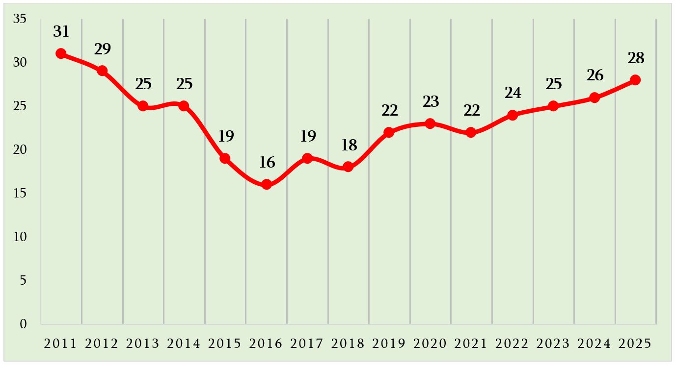 მაღალი პოზიციის მიუხედავად, ბოლო წლებში, ინდქსში საქართველოს ჩამოქვეითება უკვე ტენდენციად იქცა და 2012 წლის მდგომარეობას დაუბრუნდა.