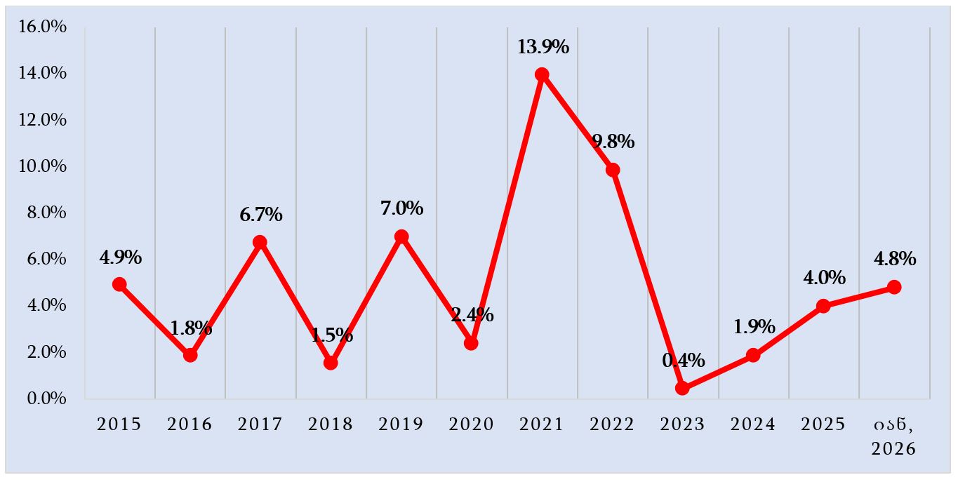 გრაფიკი: წლიური ინფლაცია საქართველოში, პერიოდის ბოლოს