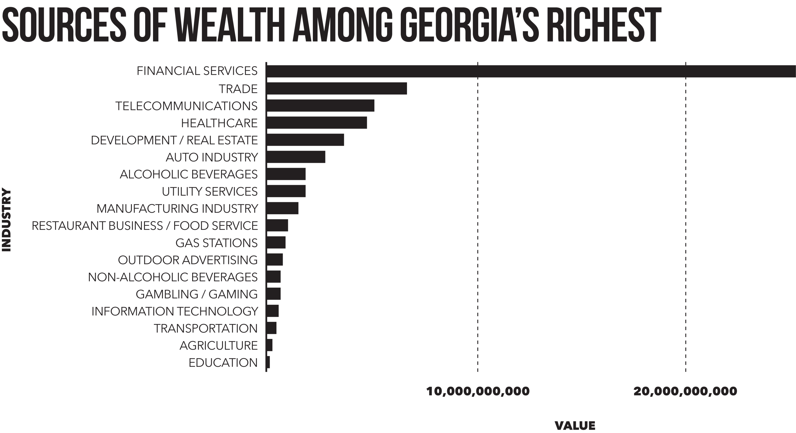 The list is based on the valuation of business assets held in Georgia by individuals and families and reflects their entrepreneurial capital—specifically, their equity stakes in companies.