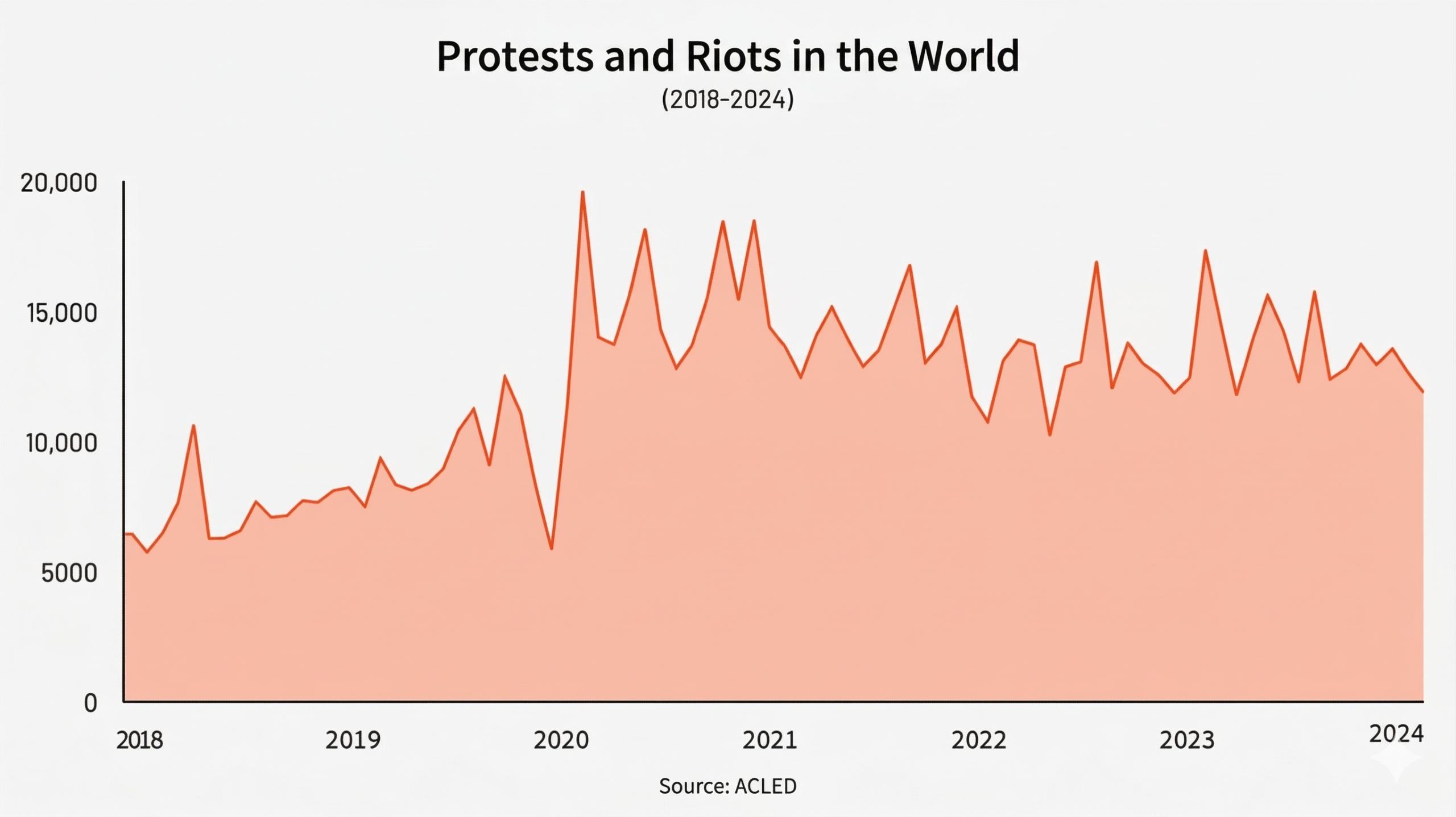 Even so, the data clearly shows that social unrest peaked in 2020 — a direct result of COVID-19 lockdowns, which severely restricted the right to protest by banning public gatherings. Some governments also used the pandemic as an opportunity to lay the groundwork for even tighter restrictions on the freedom of assembly going forward.