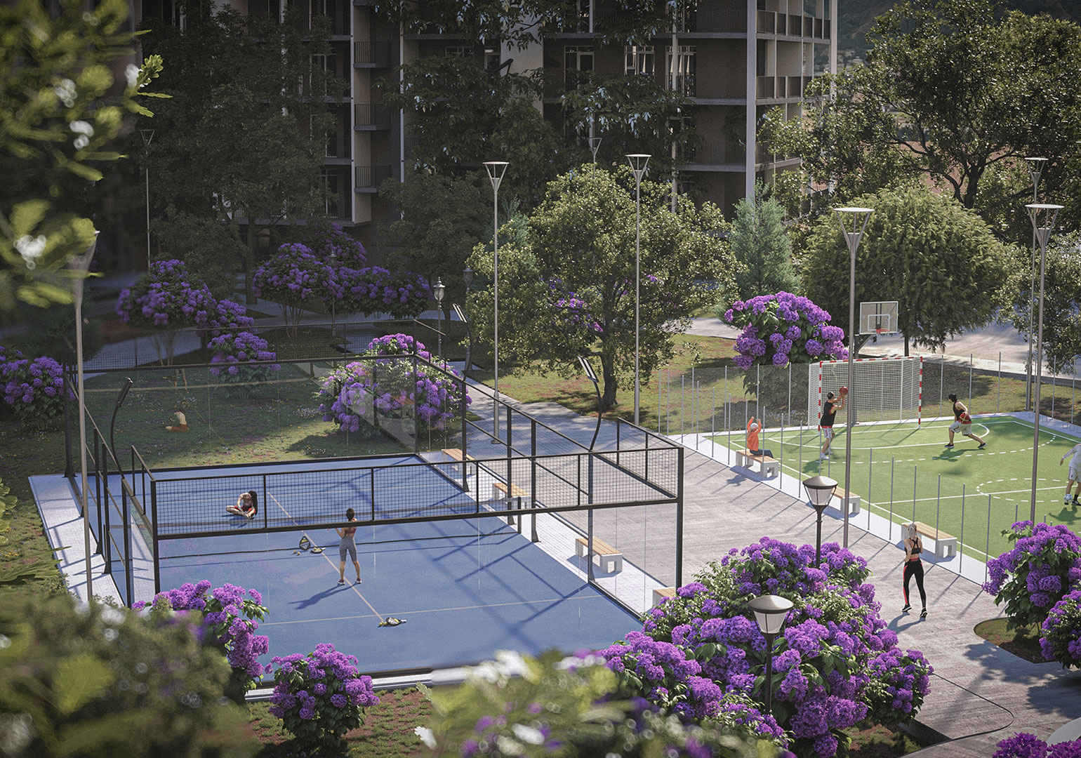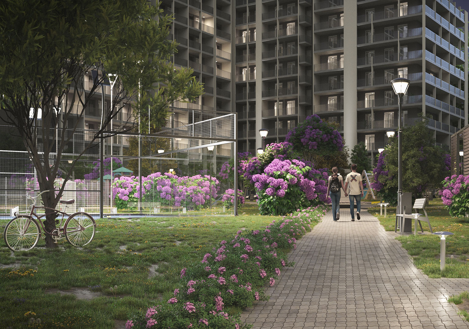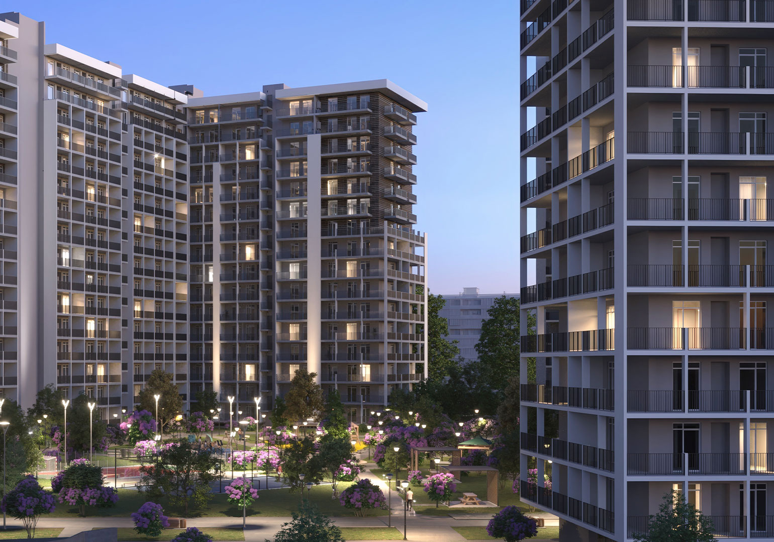 პროექტის კიდევ ერთი უპირატესობა თავად საცხოვრებელი კომპლექსის გარემოა. მობინადრეებს აქ 15,000 კვ.მ. გამწვანებული შიდა ეზო და იასამნების ბაღი დახვდებათ, რაც ქალაქის აქტიურ რიტმში საცხოვრებლად საუკეთესო, მშვიდ გარემოს ქმნის. კომპლექსი ასევე მოიცავს სპორტულ მოედნებს, სამეზობლო ლაუნჯს, სავარჯიშო დარბაზსა და სხვა მნიშვნელოვან ინფრასტრუქტურულ ელემენტებს.