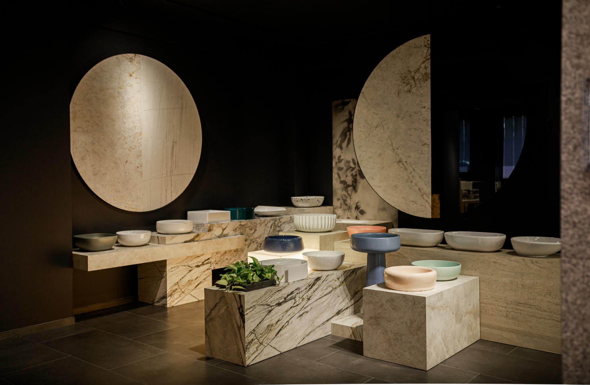 შოურუმი დიზაინ სტუდია „DUE”-სთან კოლაბორაციით შეიქმნა. ინტერიერი შეგნებულად ქრება – ღრმა შავი კედლები და ჭერი საშუალებას იძლევა, რომ თითოეული დეტალი მაქსიმალურად გამოიკვეთოს. განათება კი ხდება მთავარი მეგზური, რომელიც სტუმარს პროდუქტს სხვადასხვა პერსპექტივიდან აჩვენებს. სივრცე ასევე მოიცავს ტრანსფორმირებად მუდბორდ–ზონებს – ადგილს, სადაც დიზაინერს თუ არქიტექტორს საკუთარი იდეის ვიზუალიზაცია შეუძლია. ჩვენ არ ვყიდით მხოლოდ პროდუქტს, ვთავაზობთ პროცესს.