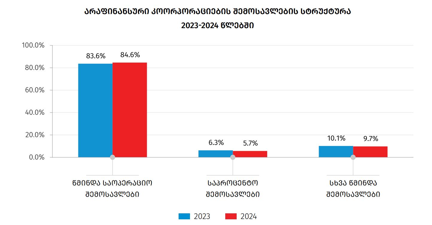 არაფინანსური კორპორაციების მიერ 2024 წელს გაწეული საპროცენტო ხარჯები 3.2 მილიარდ ლარს შეადგენდა, ხოლო მთლიანი შემოსავლები – 20.6 მილიარდ ლარს.