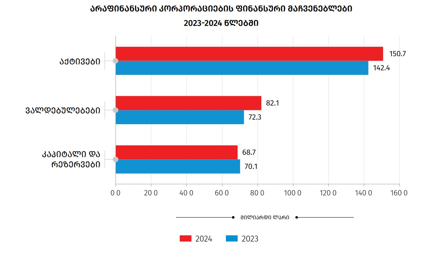 ამავდროულად, არაფინანსური კორპორაციების ვალდებულებებმა 82.1 მილიარდ ლარს მიაღწია, საიდანაც მოკლევადიანი ვალდებულებები 22.6 მილიარდ ლარს შეადგენდა.