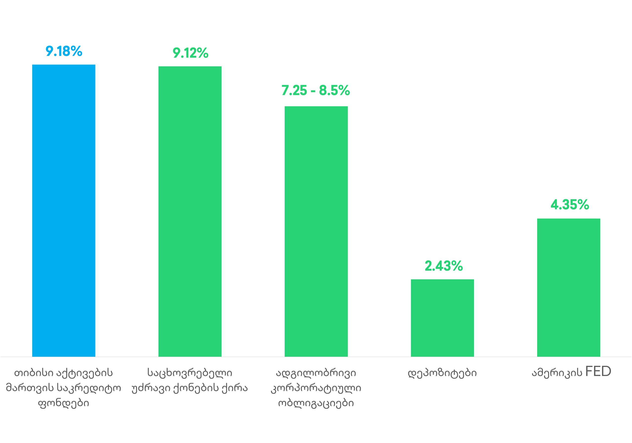კერძო საკრედიტო ფონდში ინვესტირება დღეს მიმზიდველი შესაძლებლობაა, რადგან სხვა ტიპის ინვესტიციებთან შედარებით გამორჩევა უფრო მაღალი განაკვეთებით, სტაბილური შემოსავლიანობითა და დაცვის მაღალი მექანიზმებით. თიბისი აქტივების მართვას ამ ეტაპზე 2 განსხვავებული ტიპის შეთავაზება აქვს ინვესტორებისთვის: უფრო დივერსიფიცირებული, 8.5-9.0%-იანი სამიზნე განაკვეთით; და მიზნობრივი/სექტორული, 9.0-9.5% სამიზნე განაკვეთით.